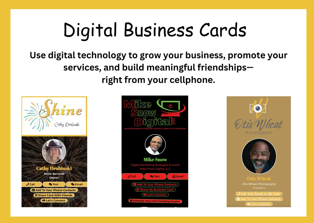 “This is the future of business networking! My digital business card has everything—contact info, a link to my calendar for appointments, and even a portfolio link. It’s easy to share via text or email or QR code.”