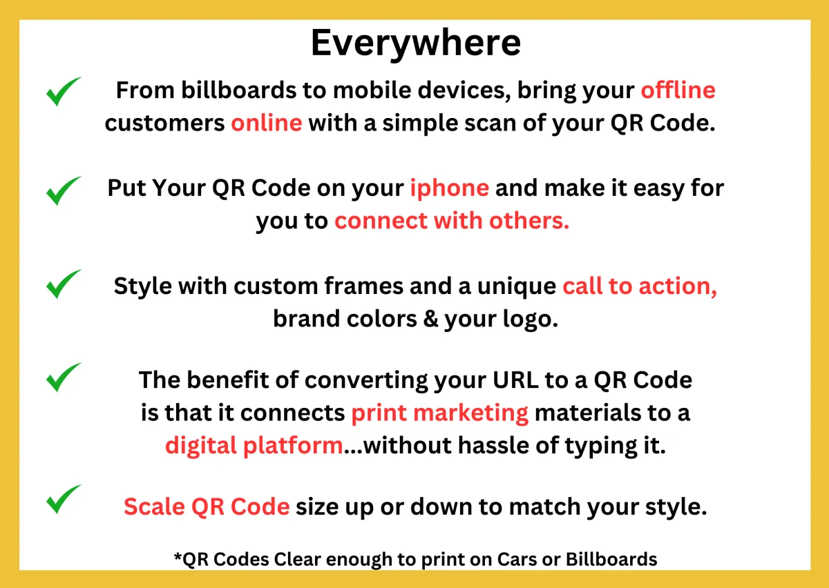 When you need your QR Code in a formate that is clear enough to print on a billboard or wrap your car...you can count on us.